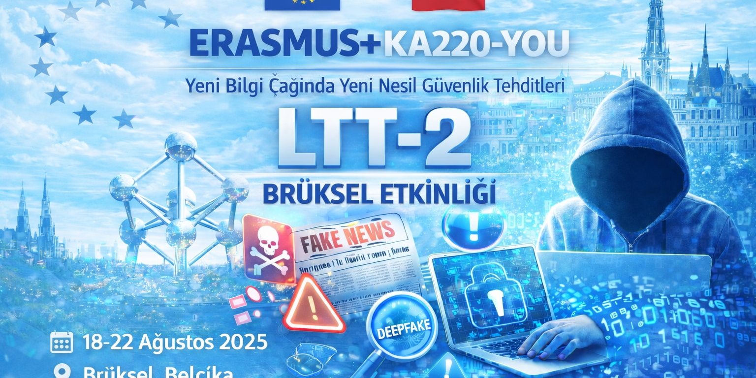 Ortağı olduğumuz Erasmus+ KA220-YOU projesi kapsamında düzenlenecek ikinci Öğrenme, Öğretme ve Eğitim (LTT) etkinliği, “Yeni Bilgi Çağında Yeni Nesil Güvenlik Tehditleri” temasıyla 18–22 Ağustos 2025 tarihleri arasında Belçika’da, LEAD BELGIUM ASBL ev sahipliğinde gerçekleştirilecektir.